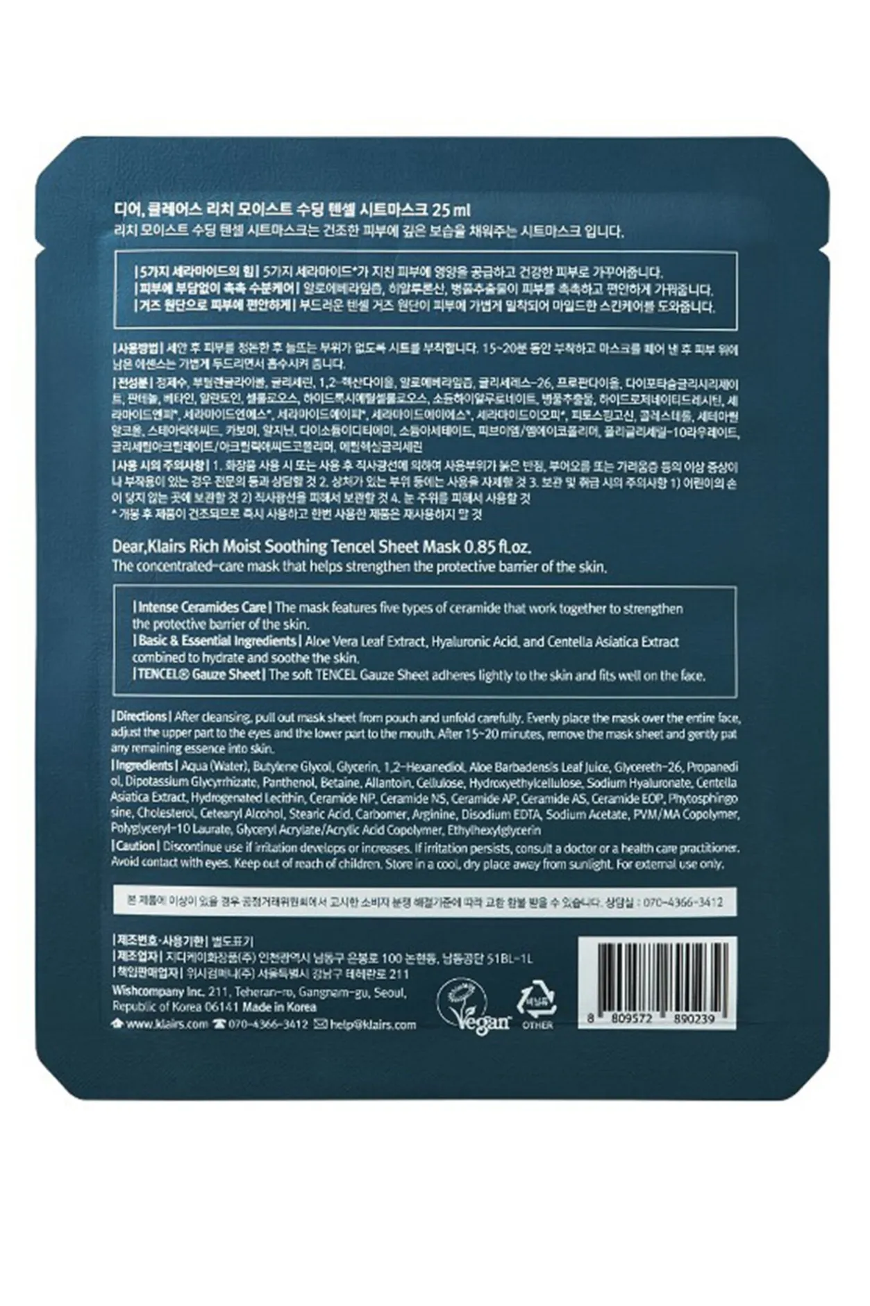 Klairs Mascarilla Calmante de Tencel Hidratante Blanco Clearance