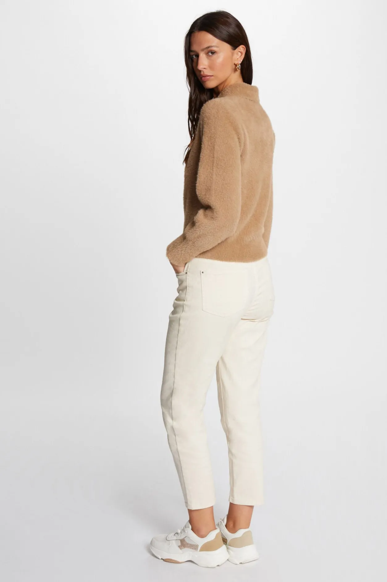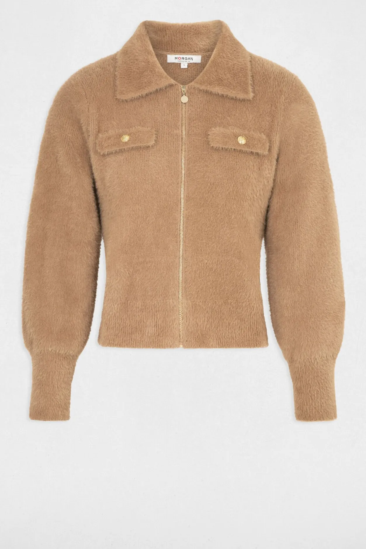 Morgan Cárdigan manga larga cuello de solapa Beige Discount