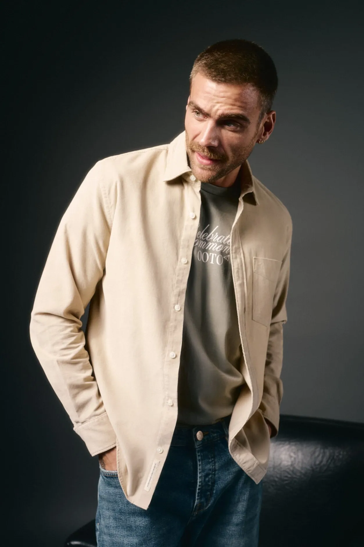OOTO Camisa micropana lisa Beige New