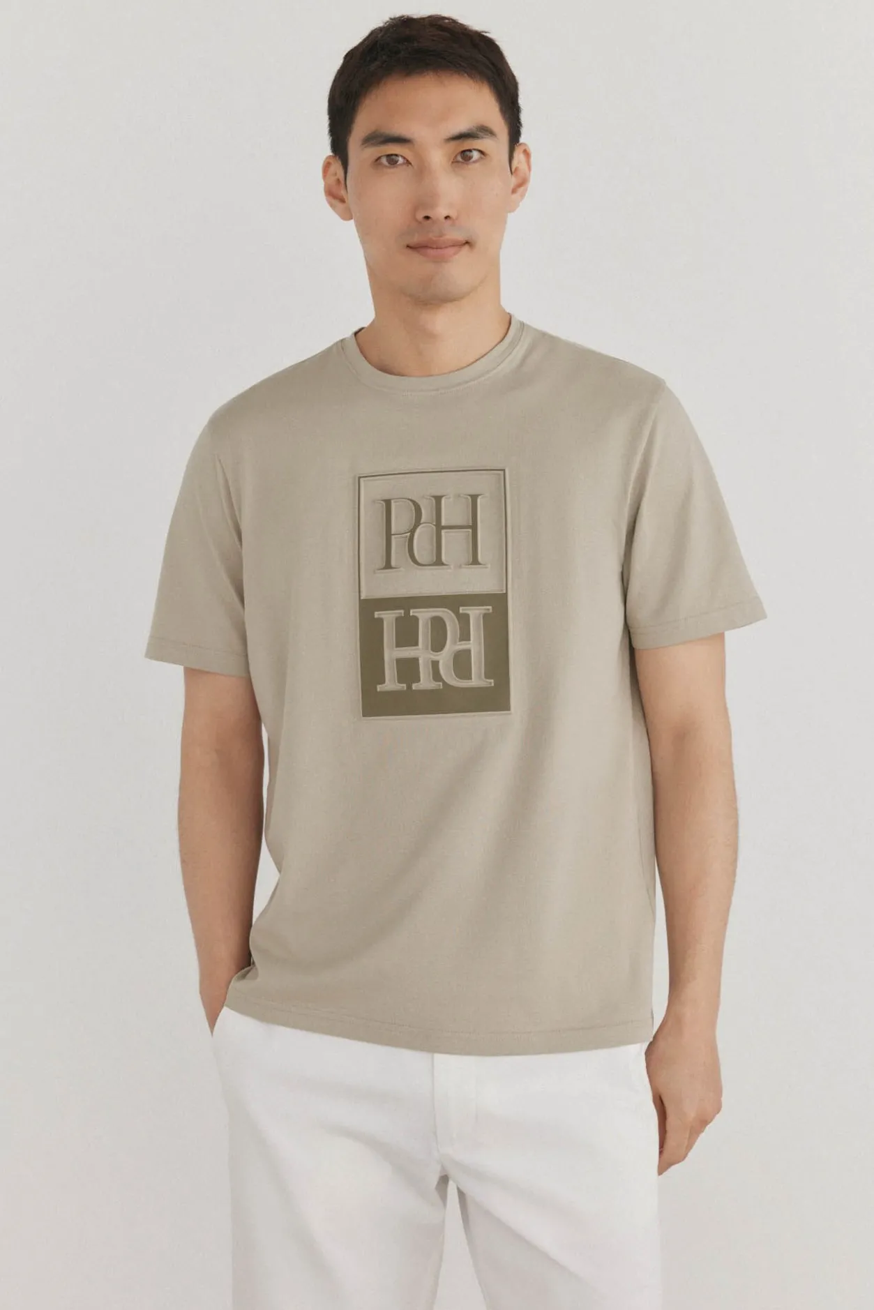 – Cuello redondo con logo estampado relieve