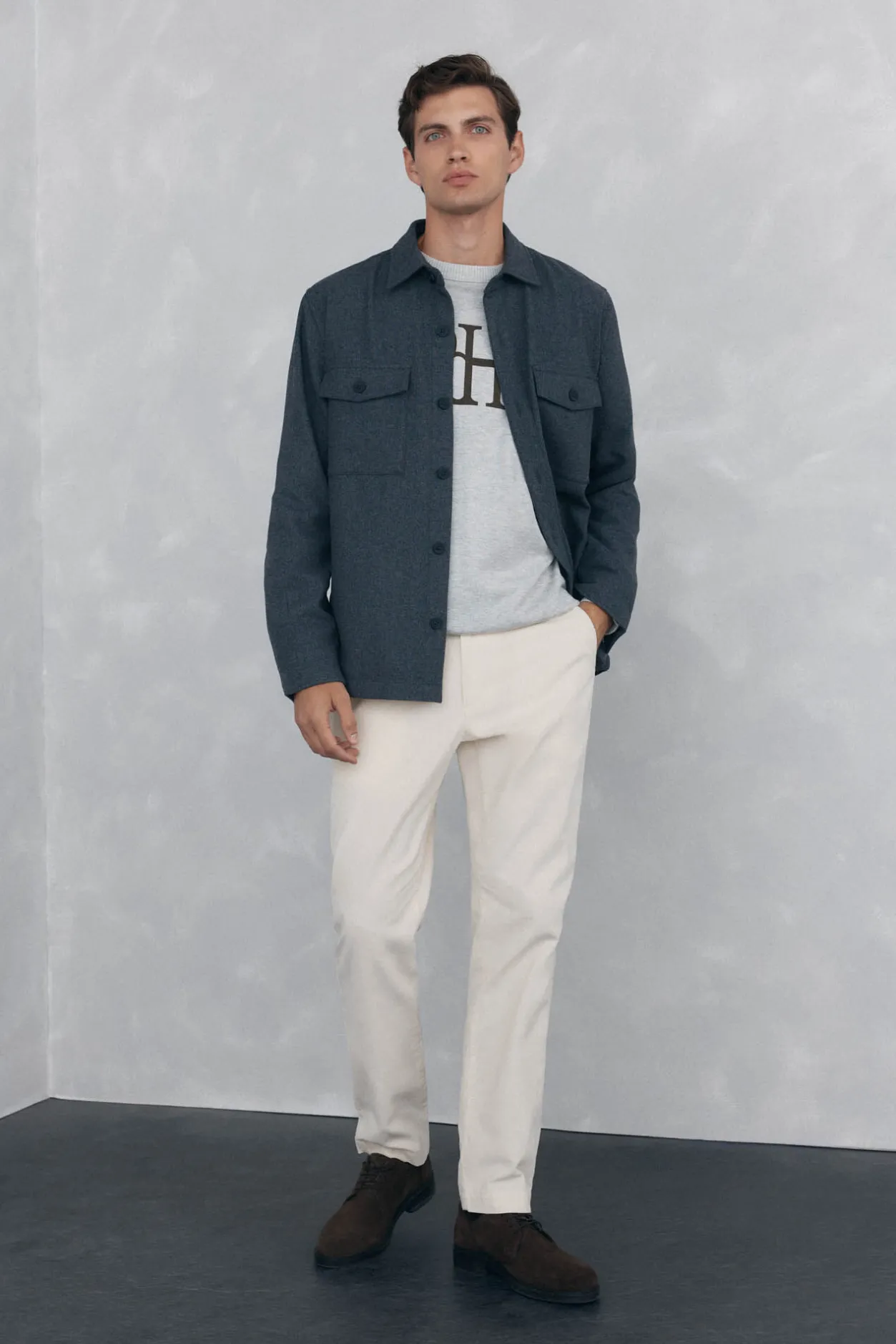 Pedro del Hierro Sobrecamisa lana lisa Gris Clearance