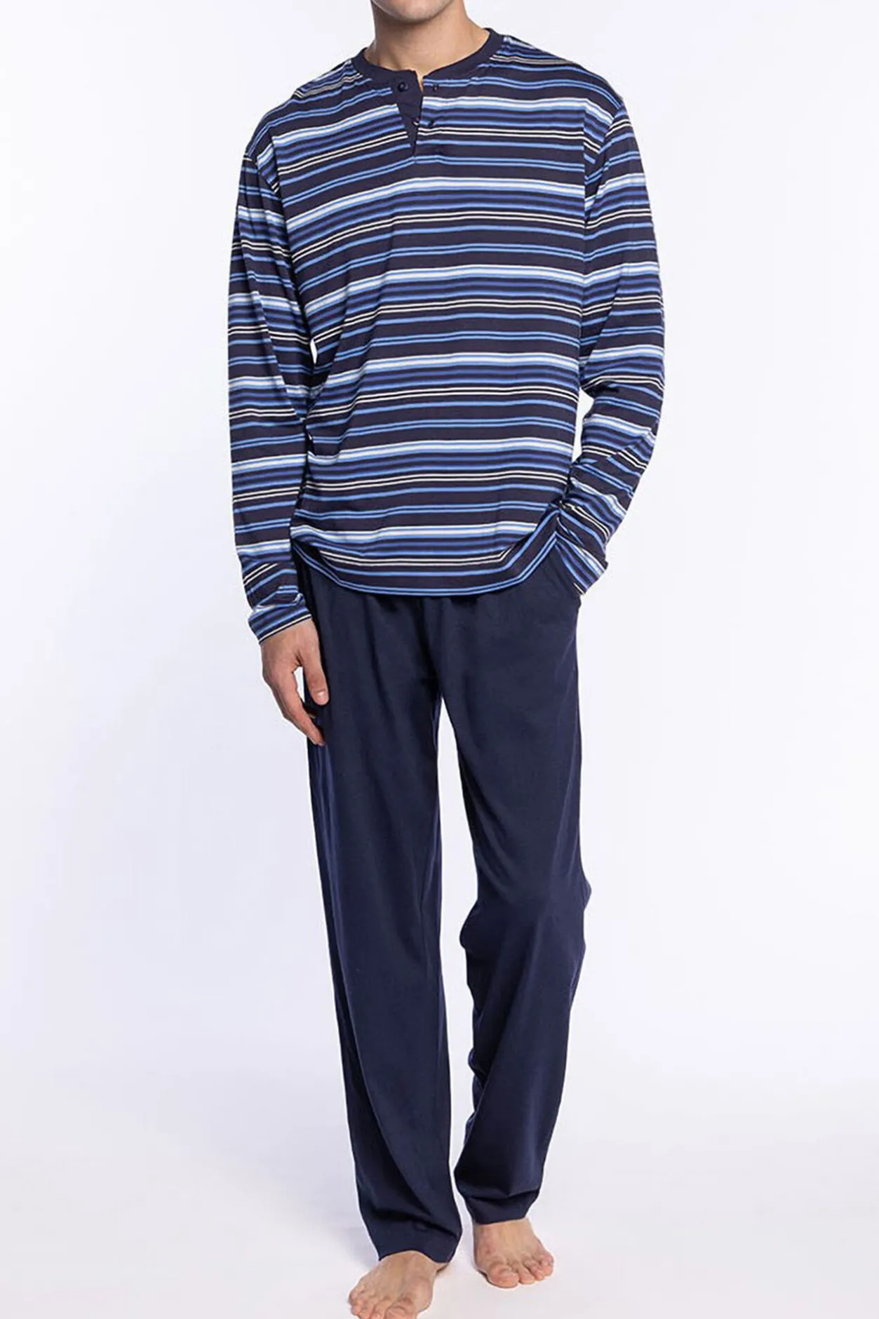 Punto Blanco Conjunto de pijama largo modal/algodón con cuello tapeta Elegance azul Outlet