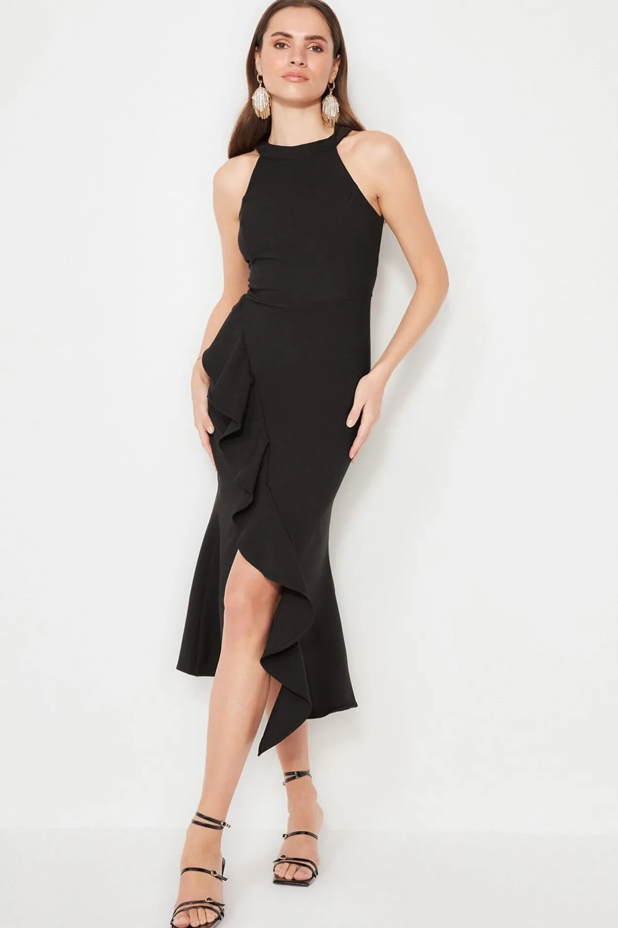 Trendyol Vestido con volantes negro Clearance