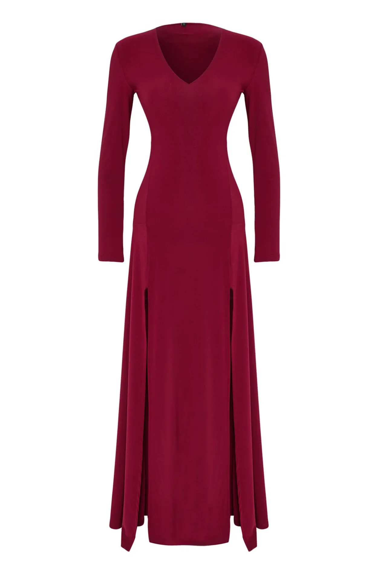 Trendyol Vestido largo con escote en V burdeos