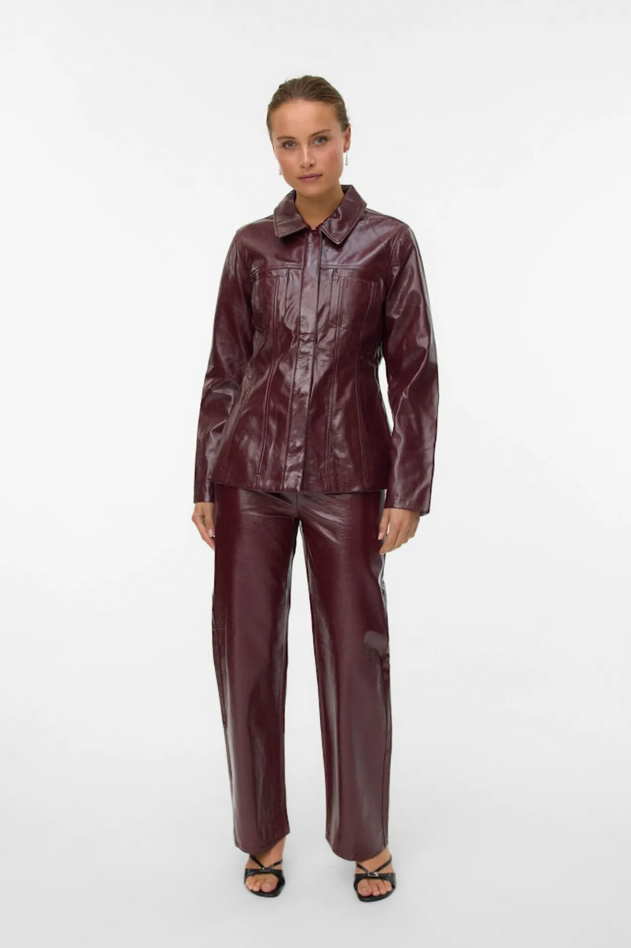 Vero Moda Cazadora ajustada efecto piel Vino Outlet
