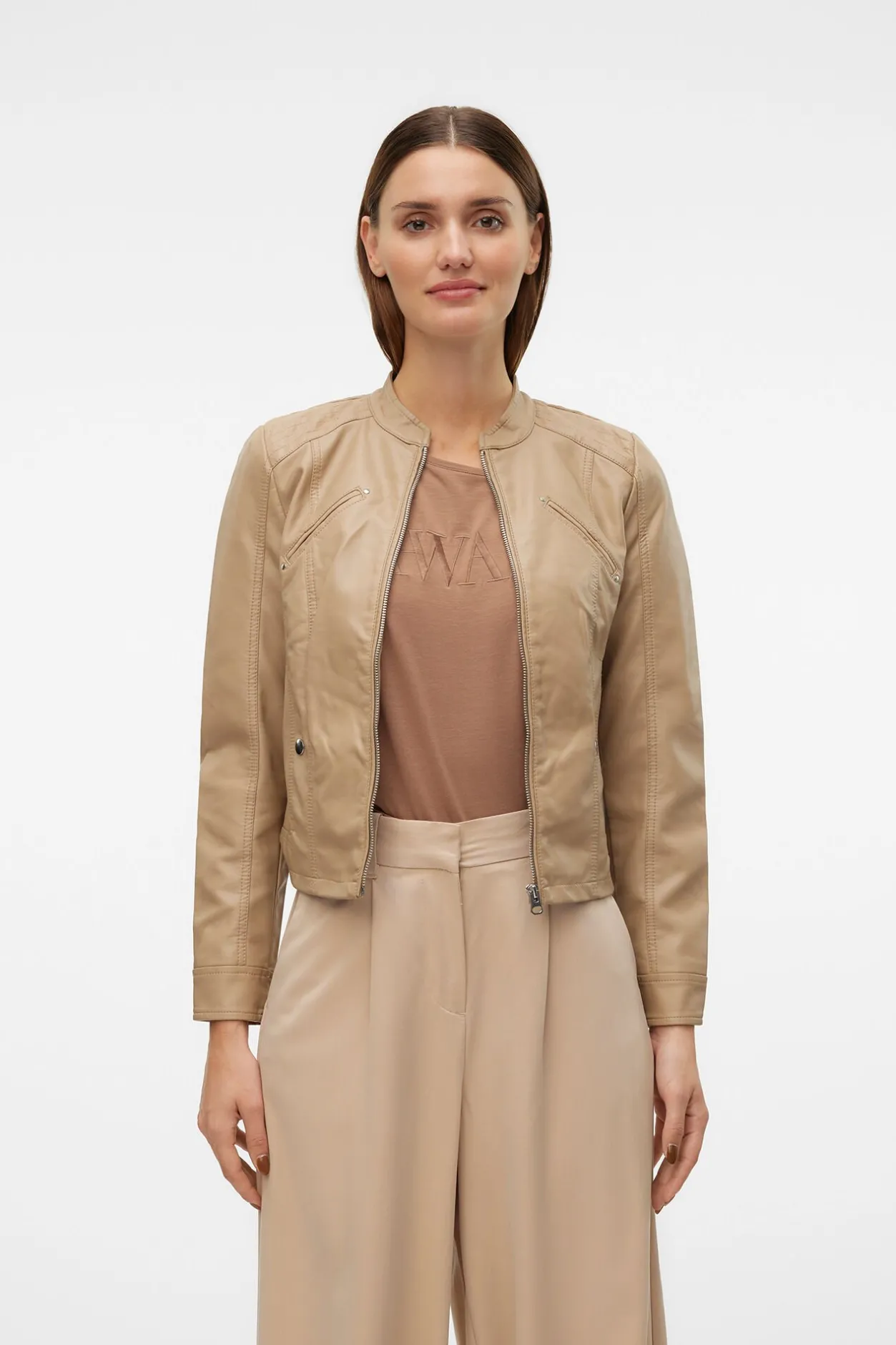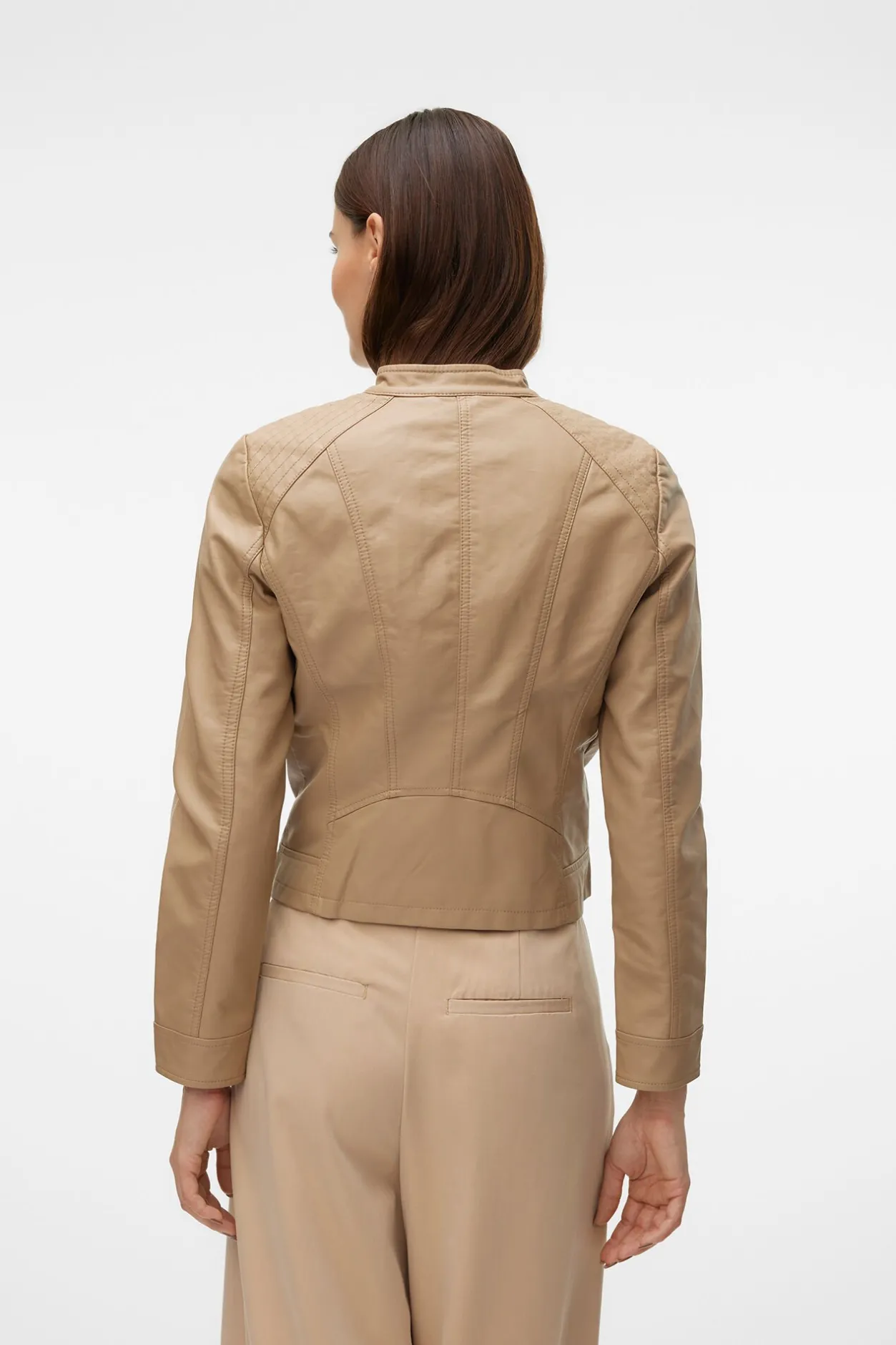 Vero Moda Cazadora efecto piel cuello Perkins Marrón New