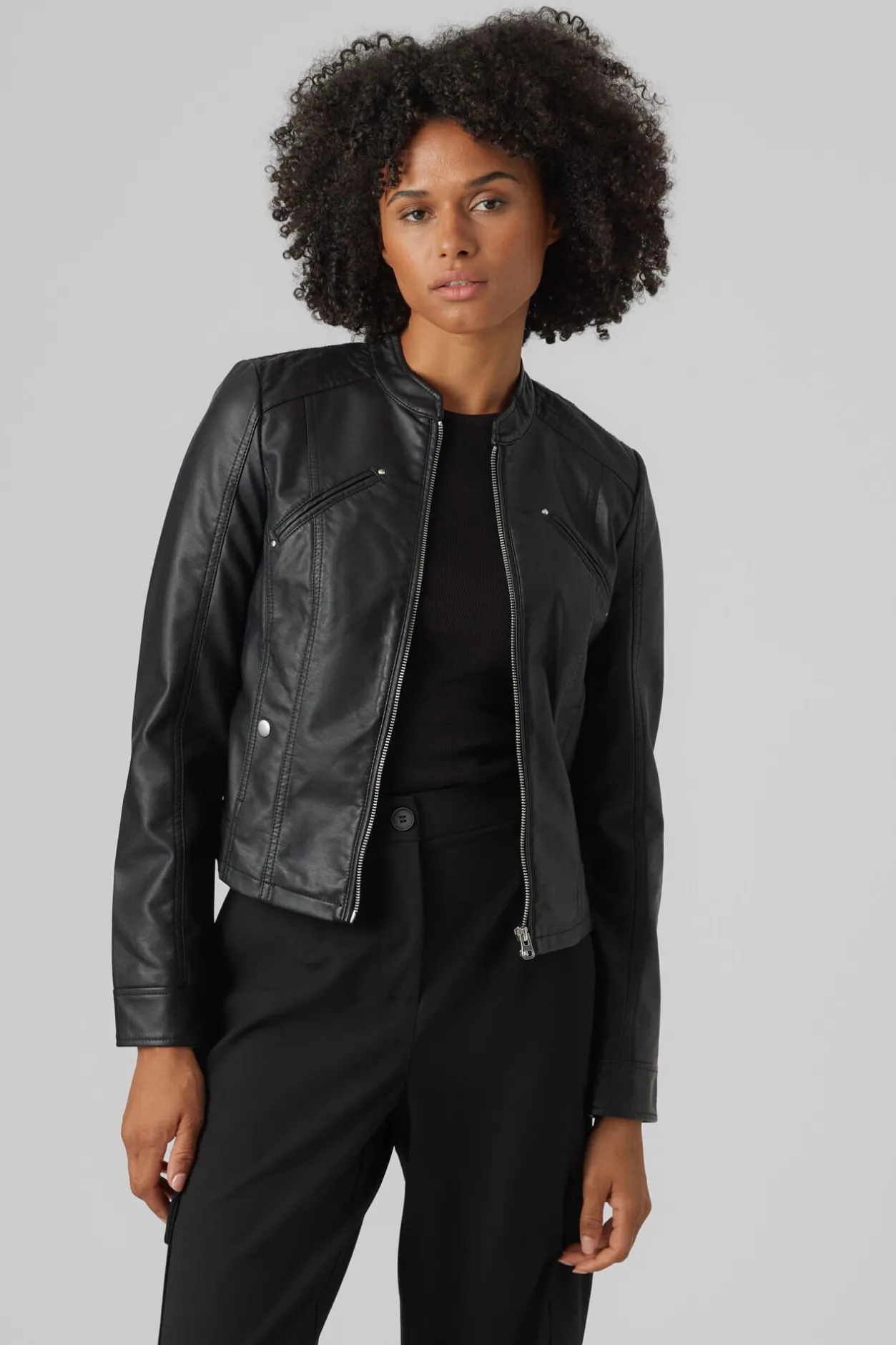 Vero Moda Cazadora efecto piel cuello Perkins Negro New