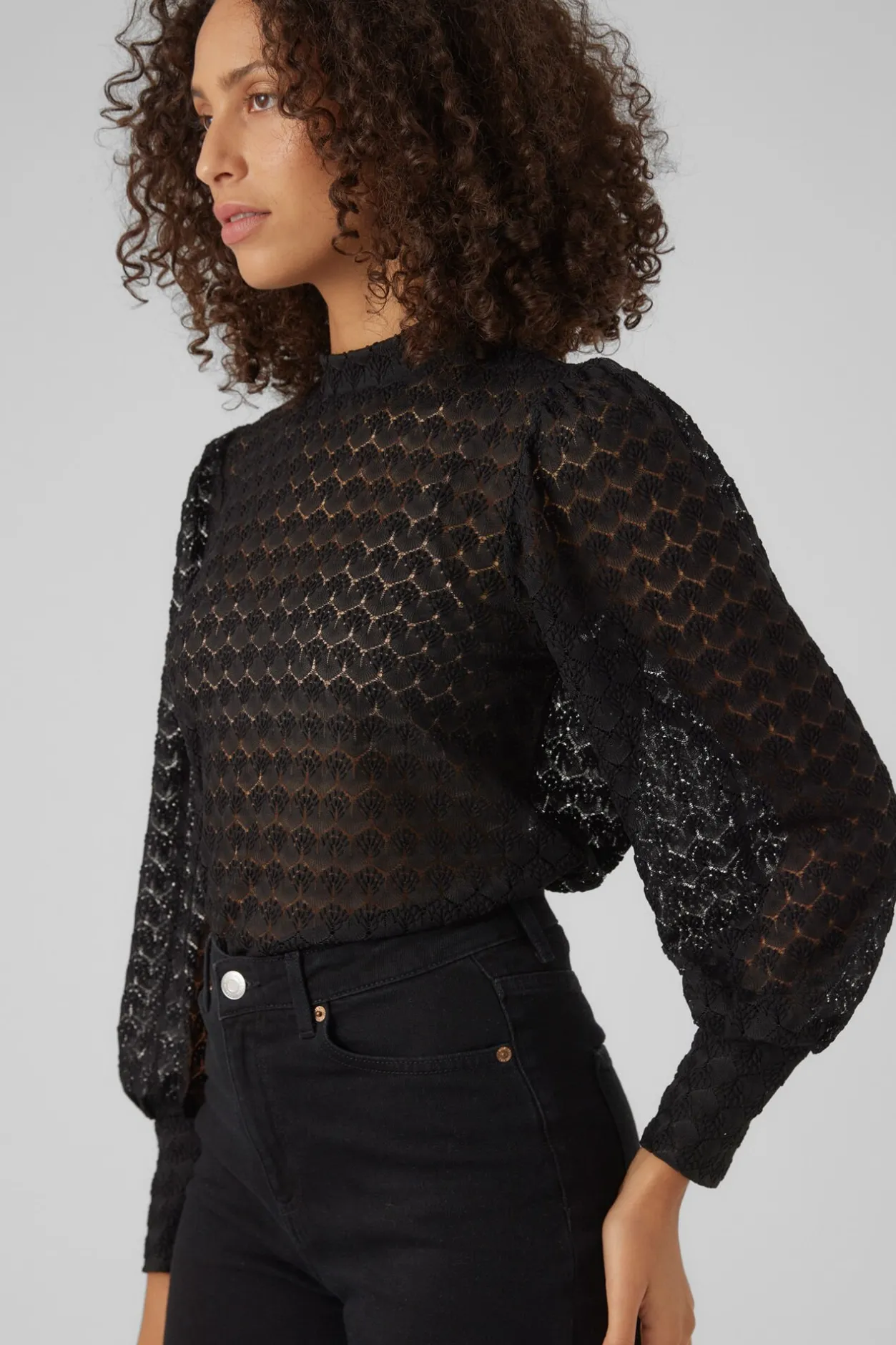 Vero Moda Top de encaje cuello cerrado Negro Hot