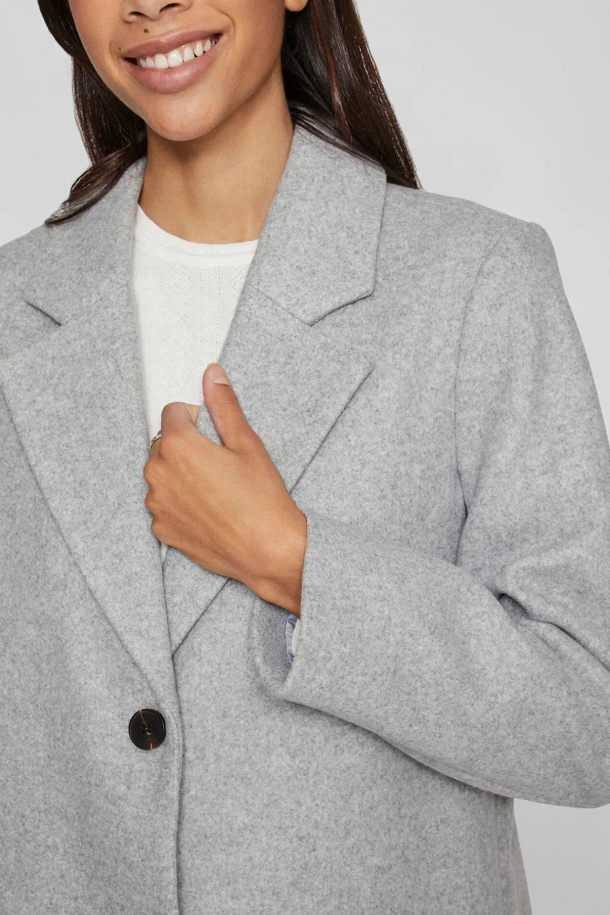 – Escote en forma de V con abotonadura frontal