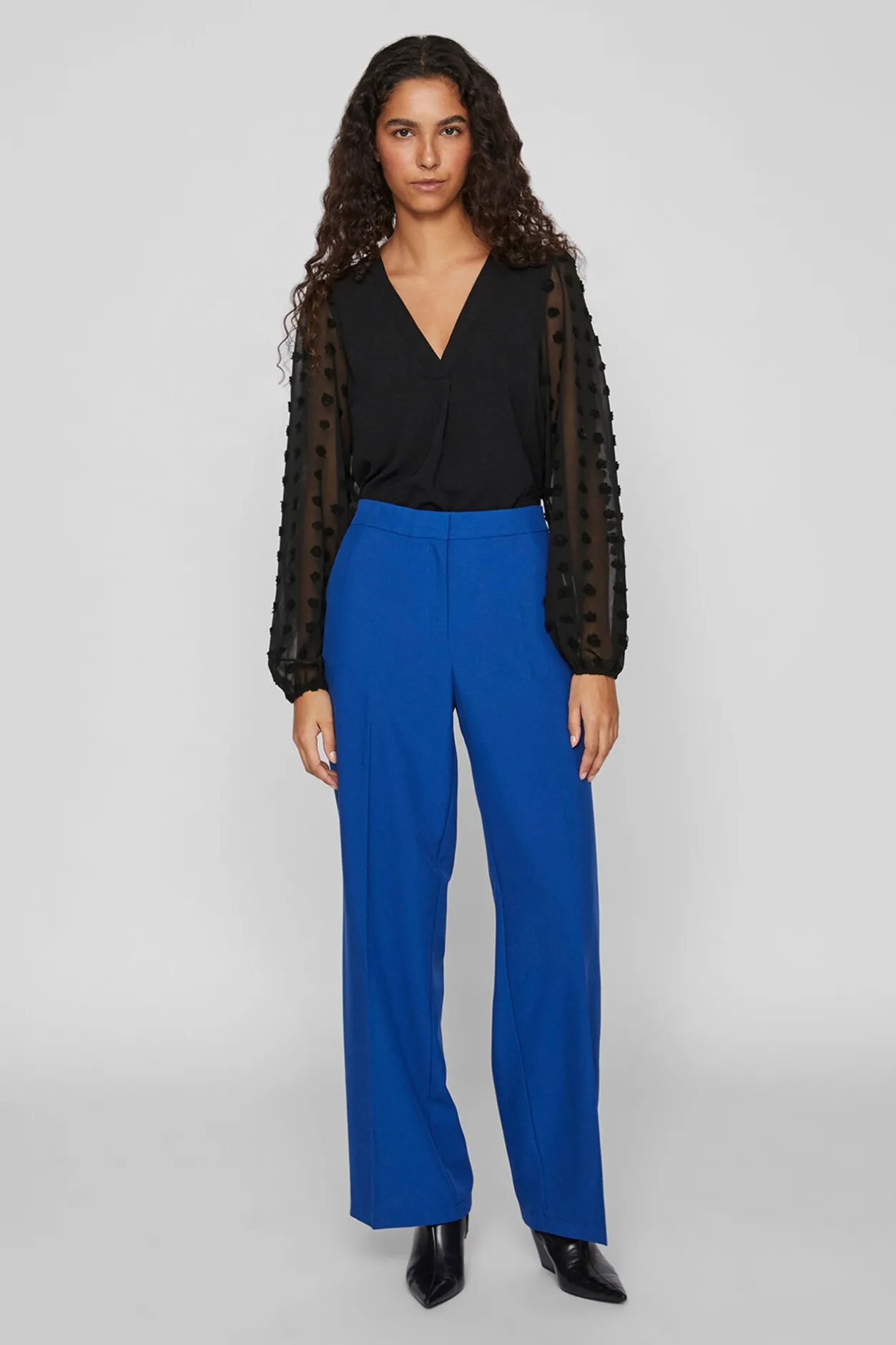 – Mangas semitransparentes, ligeramente abullonadas con elástico en puños