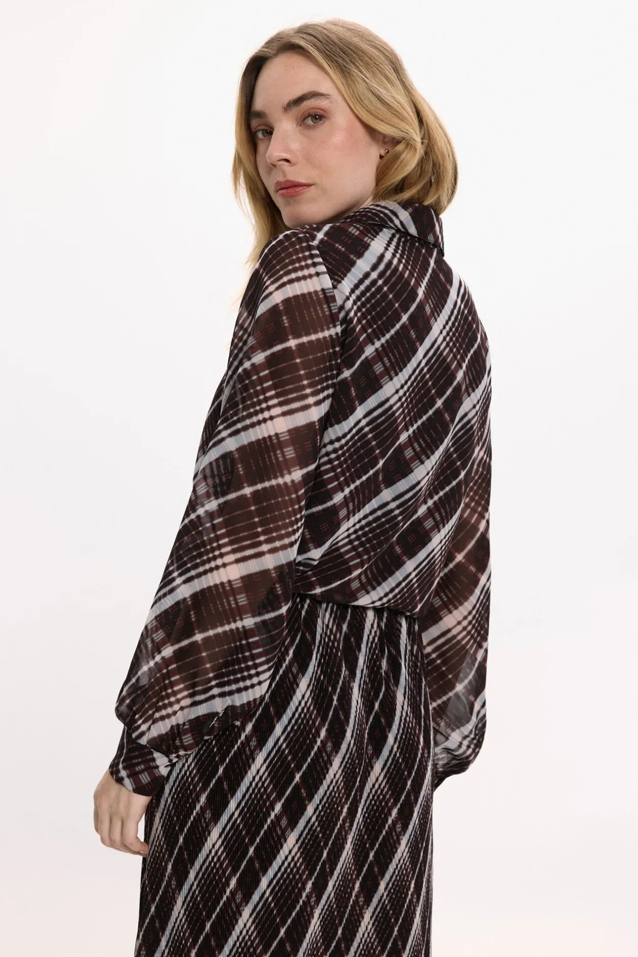 – Manga larga ligeramente abullonada con puños abotonados