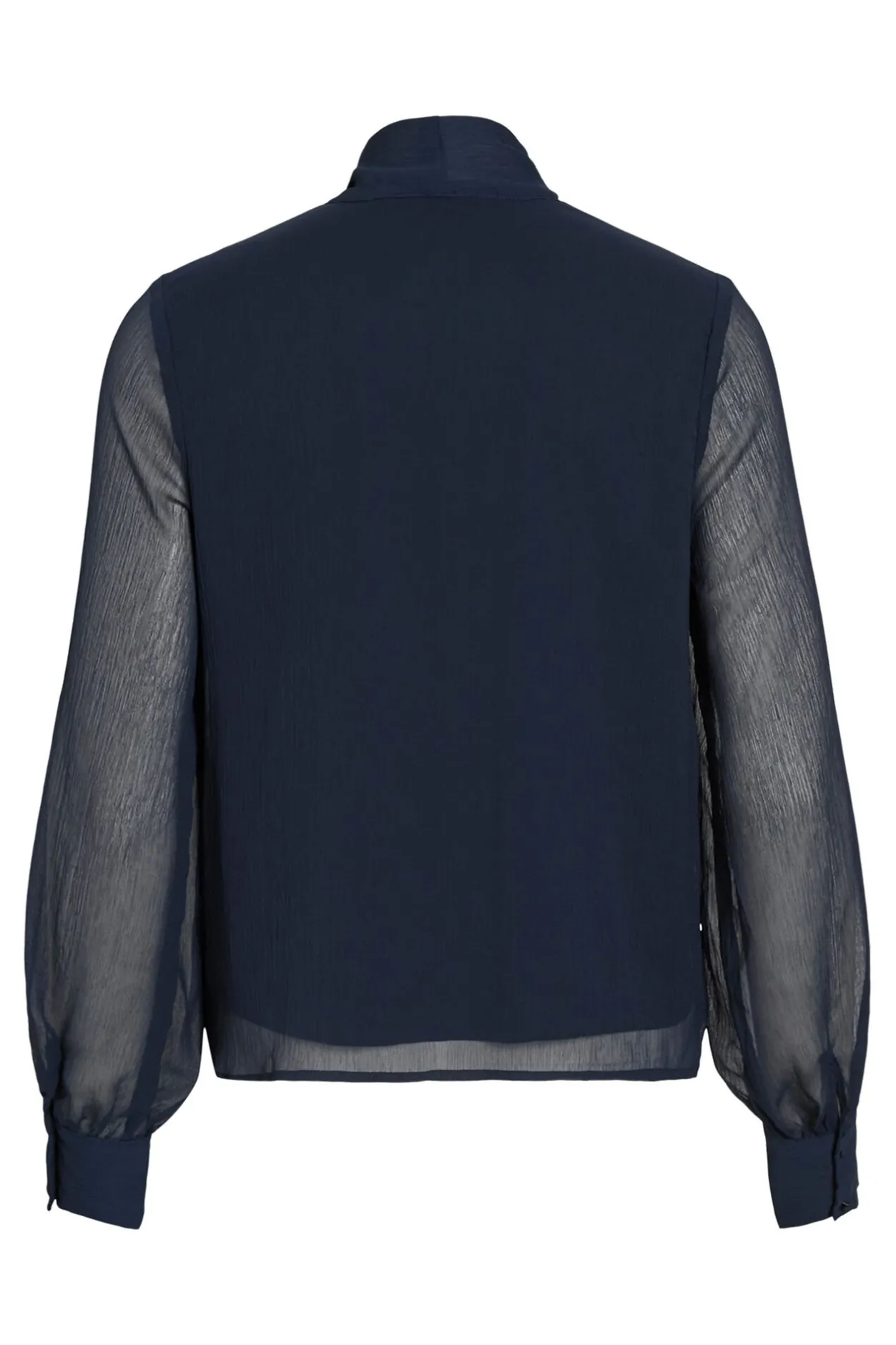 – Mangas largas semitransparentes con puños abotonados