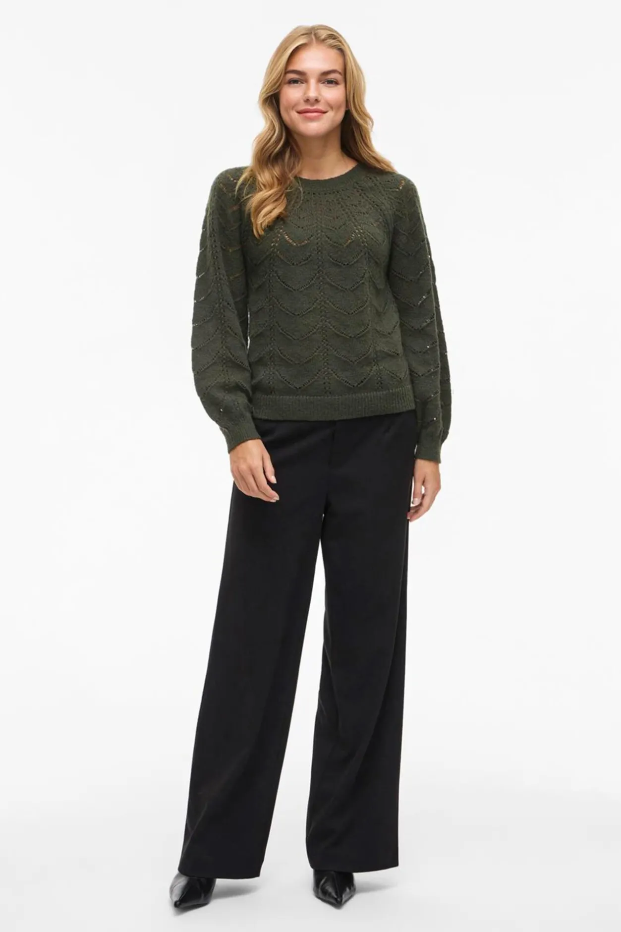 – Manga larga ligeramente abullonada con puños