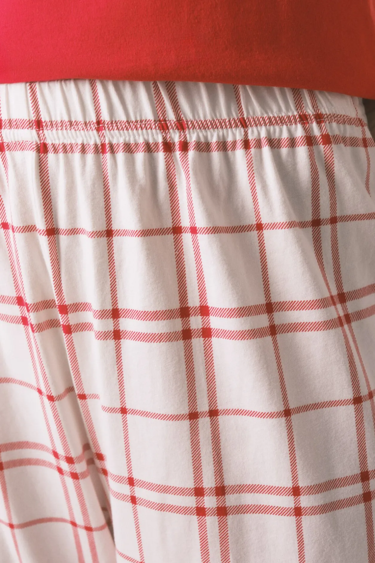 – Pantalón ancho con estampado de cuadros y cinturilla elástica.