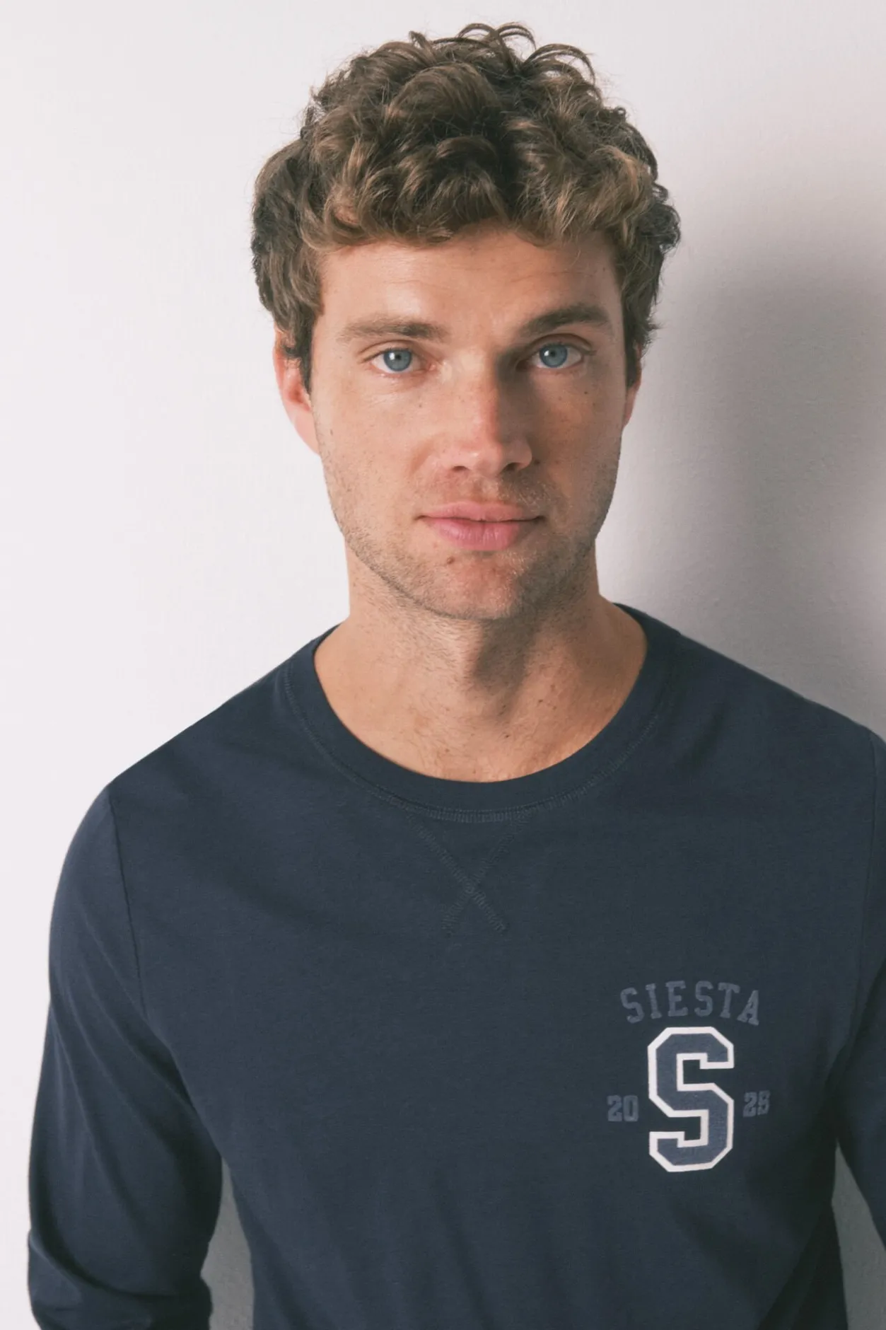 – Camiseta de cuello redondo, con detalle bordado de «S» a contraste en el pecho.