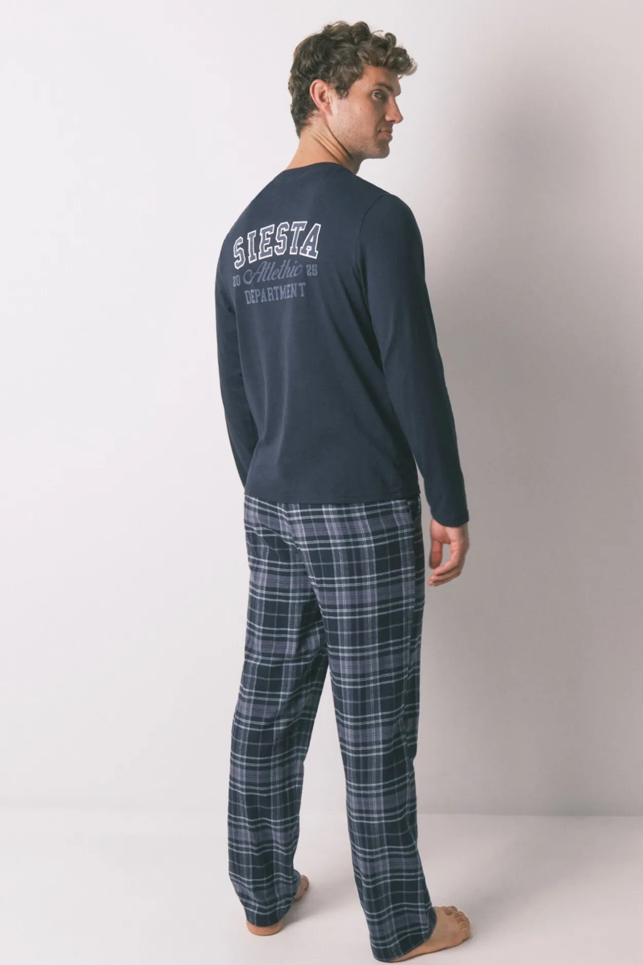 – Pantalón recto con estampado de cuadros, cinturilla elástica con cordón de ajuste a tono y bolsillos laterales.