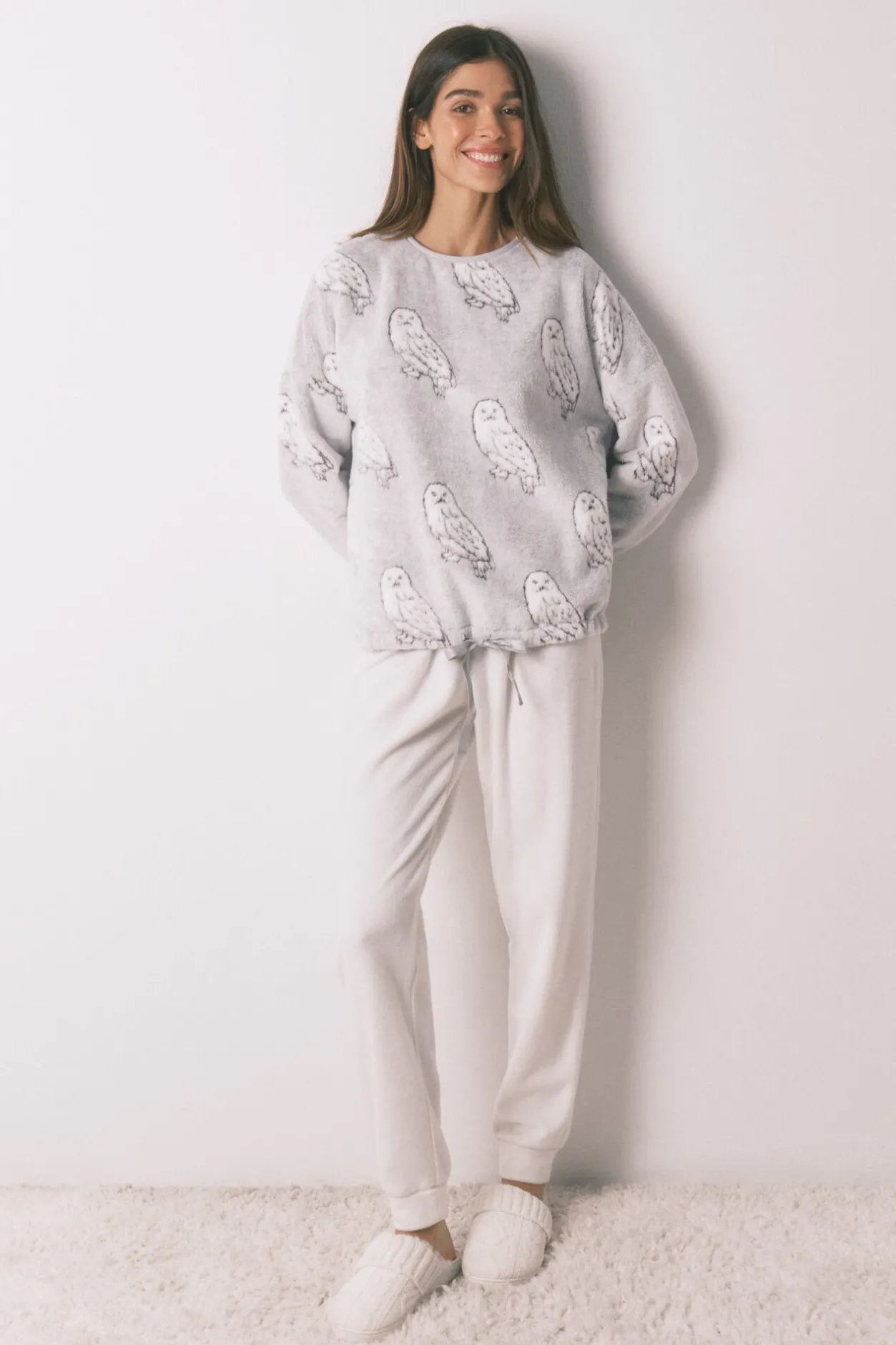 – Top con estampado de «Hedwig», escote redondo, mangas caídas y bajo ajustable mediante cinta con detalle de lúrex.